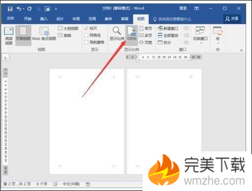6、如果不需要显示多页,即点击“显示比例”功能区的“100%” 选项按钮即可。如图所示