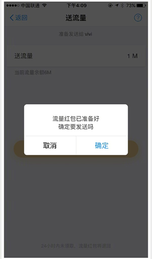 流量红包已经准备好啦,【确定】即可;