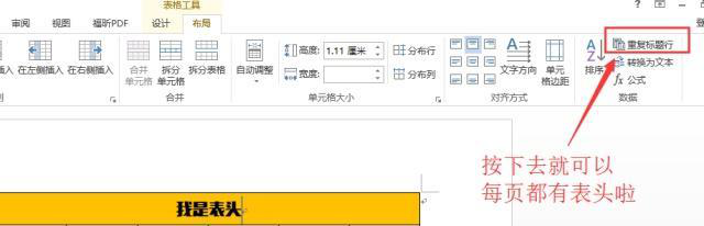 方法:选中表头——表格工具——布局——数据里面的重复标题行点一下,就可以啦,如果想要取消,再选中(了解更多word使用技巧,访问www.gxdongfangshi.com(东方狮教程))第一个表头然后再点一下重复标题行就好了。