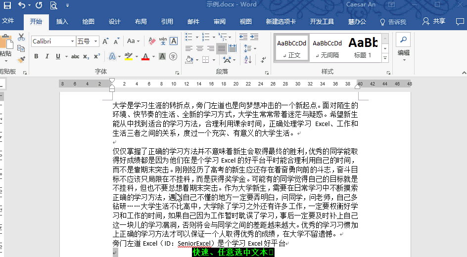 ④按住Alt键再点选文字,可以不受行的限制选中矩形区域内的文字。