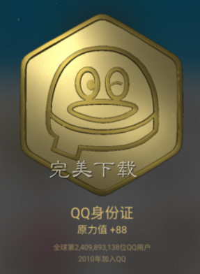 1、qq身份证【只要创建了qq就可以获得这个勋章】原力值最高+88