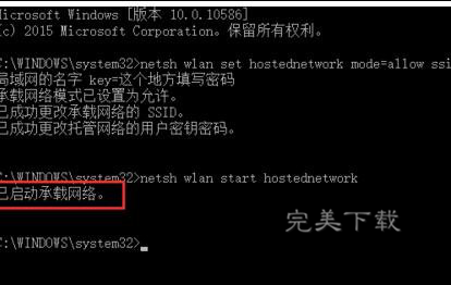 当提示出现已启动承载网络,才算完成,否则一定是输入错误,直接复制粘贴最好