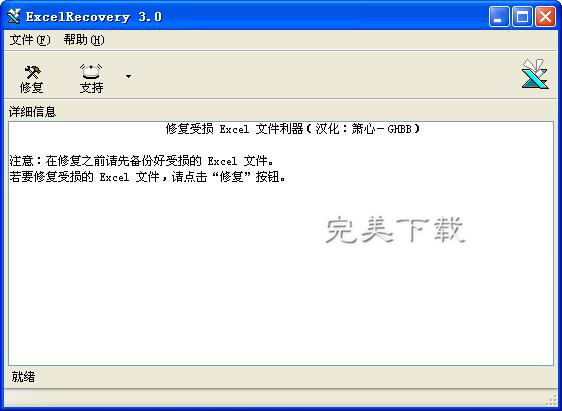 我们也可以使用软件来修复Excel表格,Excel Recovery就是专门用于修复Excel表格的软件,打开Excel Recovery软件,点击修复(下载Excel Recovery,访问https://www.www.gxdongfangshi.com(东方狮教程)/soft-18661.html);