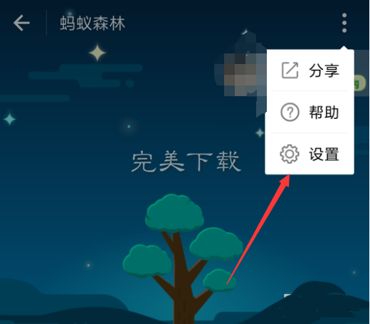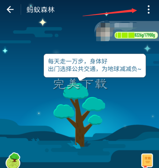 2、然后点击蚂蚁森林页面右上角的三点,如图所示