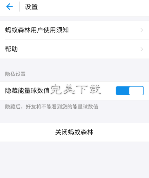 4、在设置页面我们就可以看到有隐藏蚂蚁森林能量球的选项了,我们点击将其打开