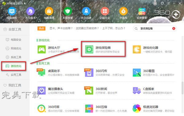 方法一、进入360安全卫士在“我的工具”,找到“360游戏保险箱”,卸载重装。