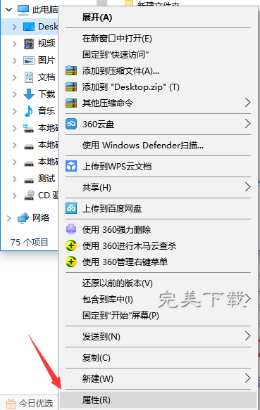 2、打开我的电脑之后,然后鼠标右键点击左侧“快速访问”下方的“桌面”,然后点击选择“属性”,如下图所示。