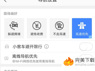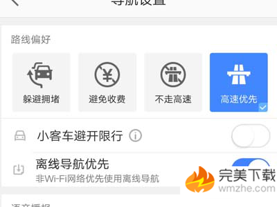 5、点击进入,之后可以看到在第三行有一个离线导航优先,点击打开,就会变成蓝色,(离线导航是wifi下在线,流量下离线。)