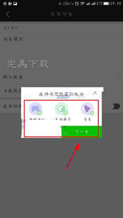 进去后再找到【自选服务】点击,最后选择你要隐藏的服务点击【下一步】即可。