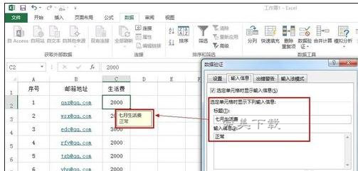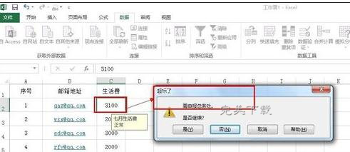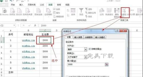 步骤1:设定生活费单人不能大于3000,点击excel 2013 ----数据-----数据验证,如图:
