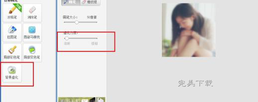 2、把裁好的头像保存好,接着点击一下背景虚化,把图片的虚化度数调一下。
