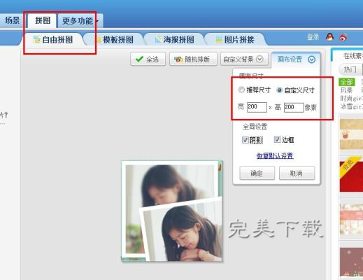 3、点击拼图,添加图片,把刚才保存好的头像打开添加进来,因为以前曾经自定义过,所以电脑里会直接默认为自定义(下载头像制作软件,访问https://www.www.gxdongfangshi.com(东方狮教程)/heji/touxiangzhizuo/)。