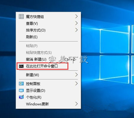 7、这样操作之后,桌面右键菜单就成功添加“在此处打开命令窗口”选项了,如下图所示。