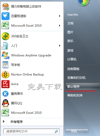 一、单击开始菜单,选择默认程序