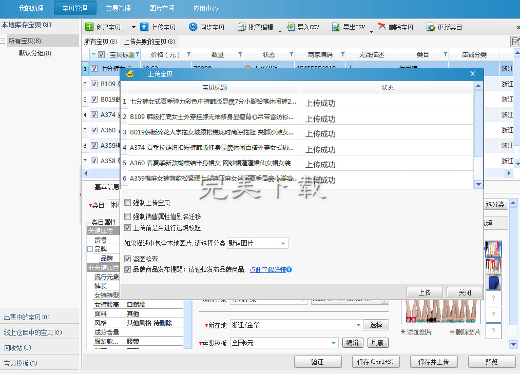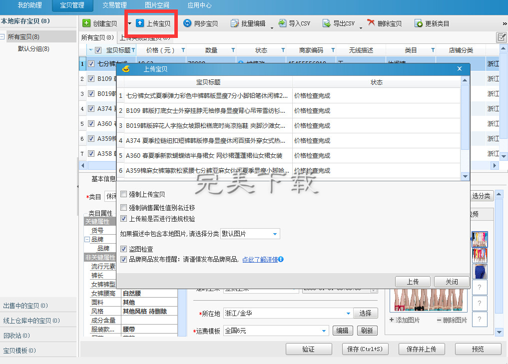 7、上传商品。(数据包内产品数量较多,可根据自己需要选择性上传)
