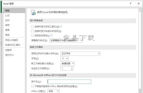 4、点击“选项”命令选项后,这个时候会打开“Excel选项”对话窗口。如图所示