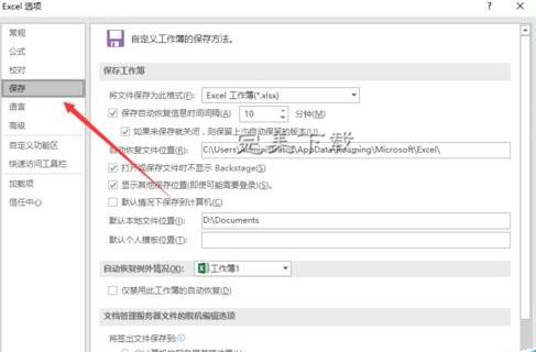 5、在“Excel选项”对话窗口中,选择左侧的“保存”选项卡栏。如图所示