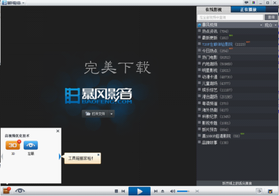 1、下载安装最新的暴风影音播放器,安装进入播放界面开始体验。