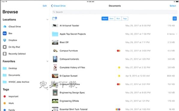 此次wwdc2017大会上苹果正式发布了ios11系统,最亮眼的升级就是在ios中加入了文件管理功能,对于一向比较封闭的ios来说,改变不可谓不大。苹果iOS11 Files文件管理器是苹果系统最新推出的一款软件,相信很多的玩家都非常的喜欢,那么,这款工具到底有什么功能,给用户的生活可以带来哪些方面的便利,下面就看下详情,希望大家喜欢。