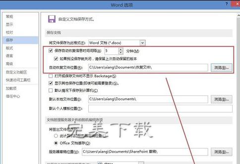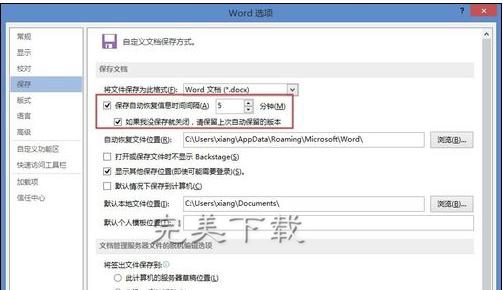 步骤4:默认情况下Word2013设置了自动恢复。如果没有设置自动恢复功能或修改自动恢复功能,可以这样操作,将“保存自动恢复信息时间间隔”复选框勾选,并设置合理的时间间隔。