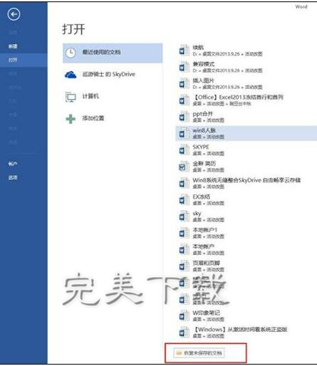 步骤二:点击 “打开其他文档”后,打开下面的页面,在这里我们选择最下面的“恢复未保存的文档”
