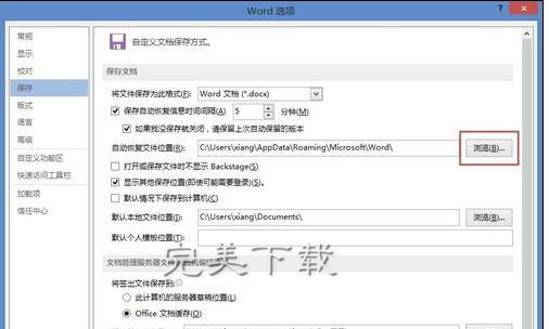 步骤5:如果你对自动恢复文件位置不满意,可以自己设置位置。单击“自动恢复文件位置”右侧的“浏览”按钮。