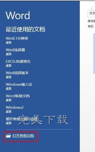 步骤一:从系统菜单中找到word软件并打开,而不是以打开某个文件的方式打开,打开后,如下图所示,选择左边最下方的“打开其他文档”