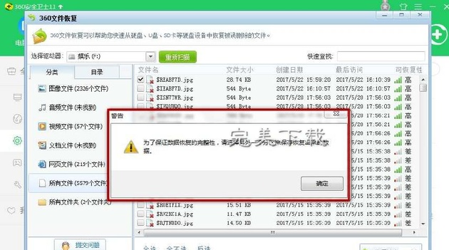注意:为了保证数据恢复的完整性,一定要选择另外一个分区来保存