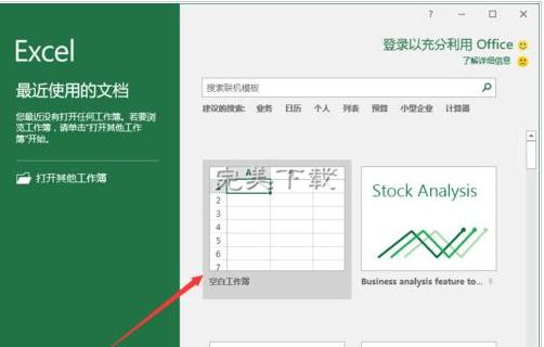 1、鼠标左键双击计算机桌面Excel2016程序图标,将其打开运行。在打开的Excel程序窗口,点击“空白工作簿”选项,新建一个空白的工作簿。如图所示