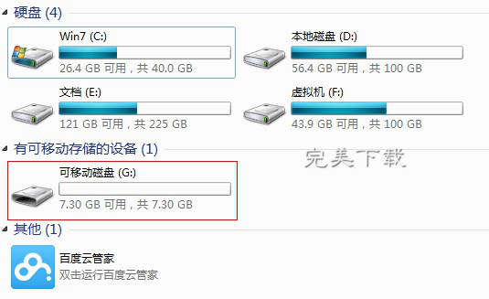 首先,插入我们需要转换格式的u盘,查看u盘在电脑中所分配到的盘符,如下图