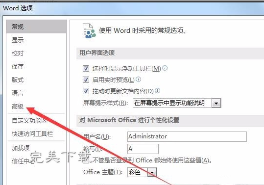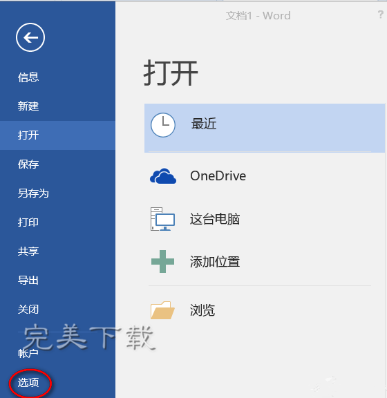 以Word 2016为例,打开Word编辑界面,点击“文件”菜单,然后选择“选项”命令。