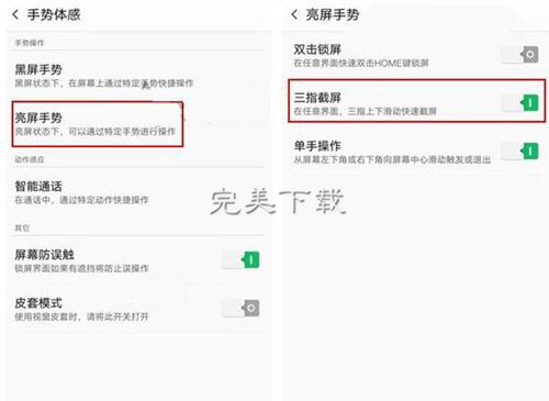 OPPO R11的coloros系统中还加入了个性化的三指截屏功能,具体操作方法是,进入 设置 -> 手势体感 -> 亮屏手势 -> 开启“三指截屏”,开启此功能后,在任意界面,可以通过三指上下滑动,快速截屏。