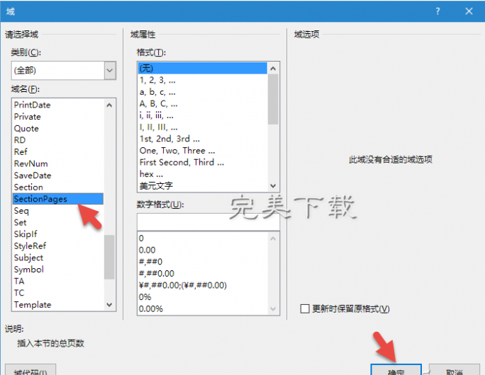 但是,细心的你可能已经发现,页码的总数没有减去封面的1页,最后一页的页码变成了4/5,那么5/5这页哪里去了?这好像有点不合乎逻辑。如何更正呢?我们只需选中页脚页码区域 1/5 的5数字,鼠标右键单击,选择“编辑域”,然后将“Numberpages”改为“Sectionpages”。