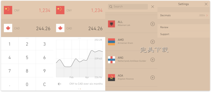 Currency是一款功能强大但操作简单的汇率查看换算软件,可任意添加需要查询国家的汇率,软件支持实时汇率显示,并提供近期汇率走势图,非常直观和方便让你把握汇率变化情况,堪称旅行必备神器!