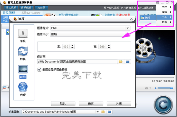 狸窝全能视频转换器本身是一款格式转换器软件,不过它也是一款非常好用视频截图软件,可以随意设置截出来的图片大小。