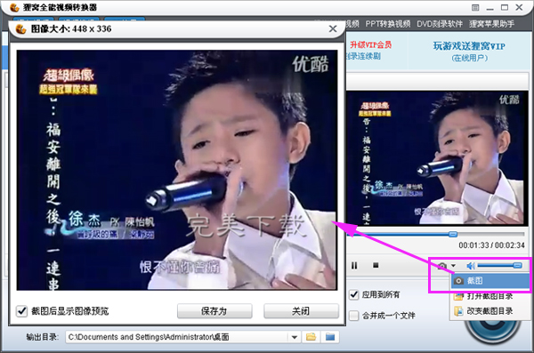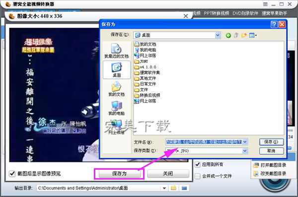 第四步:当我们选中喜欢的画面之后,点击下面的按钮“截图”,之后就弹出图片的预览按钮啦。之后我们就可以将它保存在自定义设置的文件夹上,还可以命名图片的名称。