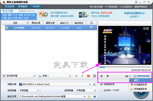 如何用狸窝全能视频转换器从视频中截图?