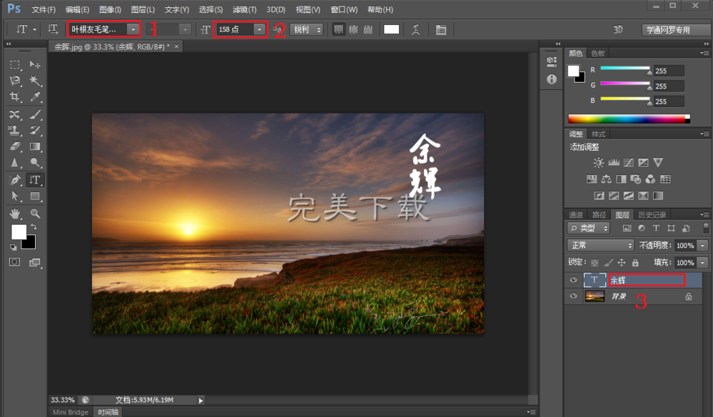 3、之后便根据自己的需要选择位置打字,根据图片红框提示,1可以选择字体,2可以选择或者输入字号,打完字后不要做其他的操作,直接点击3处。输入完成。
