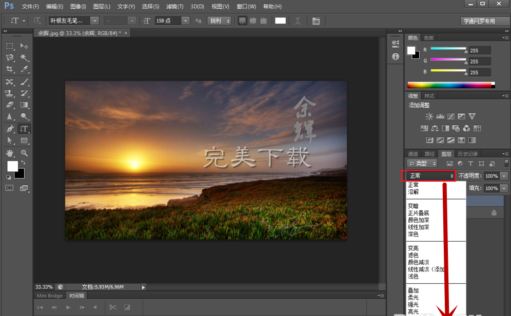 7、还没有完成哦,按图片的提示,点击Ps右侧的“正常”后会出现下来菜单,选择其中的“点光”。