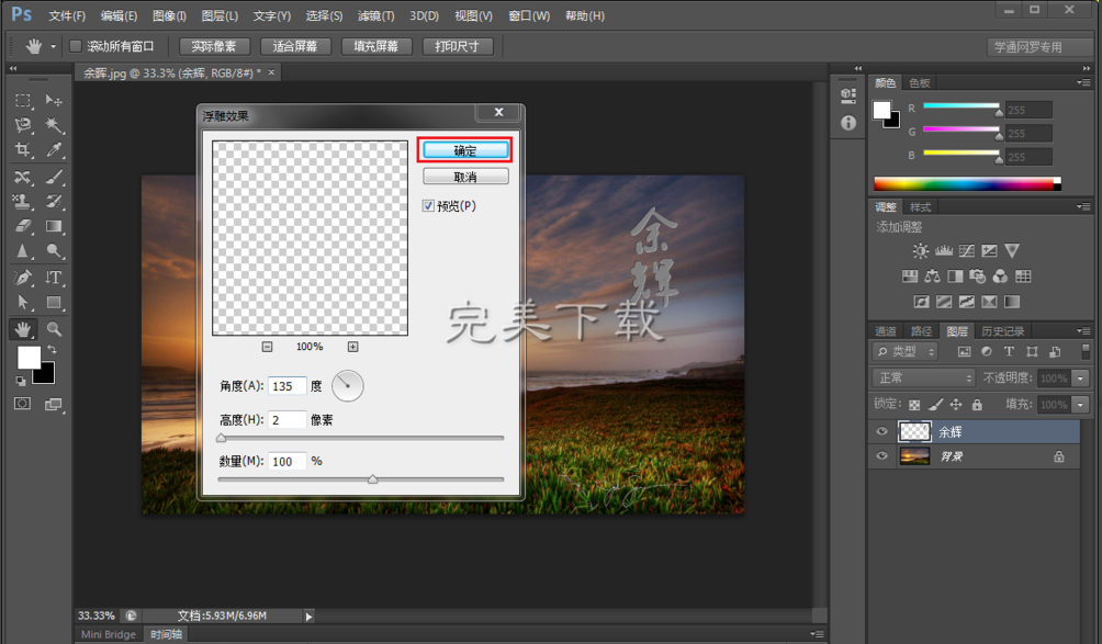 如何用Photoshop CS6 将文字处理成浮雕效果?
