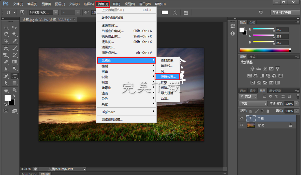4、之后选择菜单上的滤镜 → 风格化 → 浮雕效果。