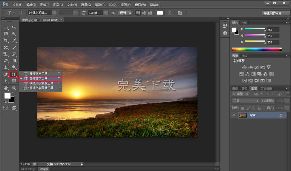 2、按图片上的红框提示,先用左键点击左侧红框内的T,之后点击鼠标右键,会出现四种文字工具,按自己的需要选择,小编选择的是第二种,可以让文字竖排显示。