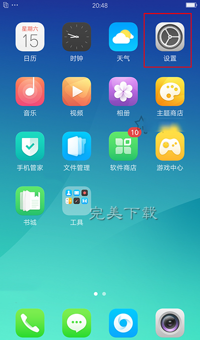 1、进入到手机系统主界面,在其界面找到【设置】应用图标点击进入,如下图所示: