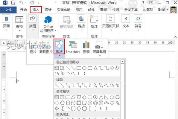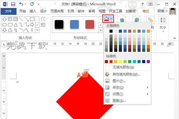步骤1:启动Word2013,首先,单击菜单栏--插入--形状,选择菱形,按住Shift键在空白页面上画出一个正菱形。