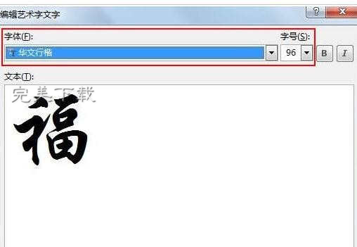 步骤4:弹出“编辑艺术字文字”对话框,在文本中输入“福”字,字体为华文行楷,单击确定。
