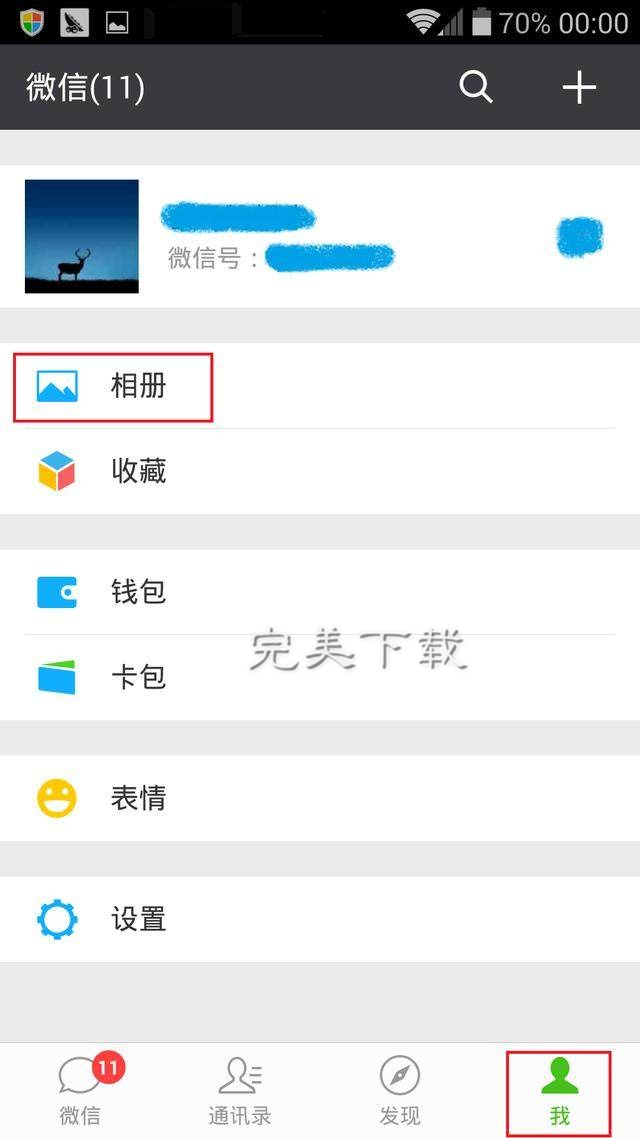 打开微信,在底部菜单中选择“我”,然后点击“相册”。