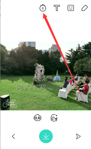 2、选择一张照片或者拍一张照片,然后点击红色箭头所指的【时钟】图标;