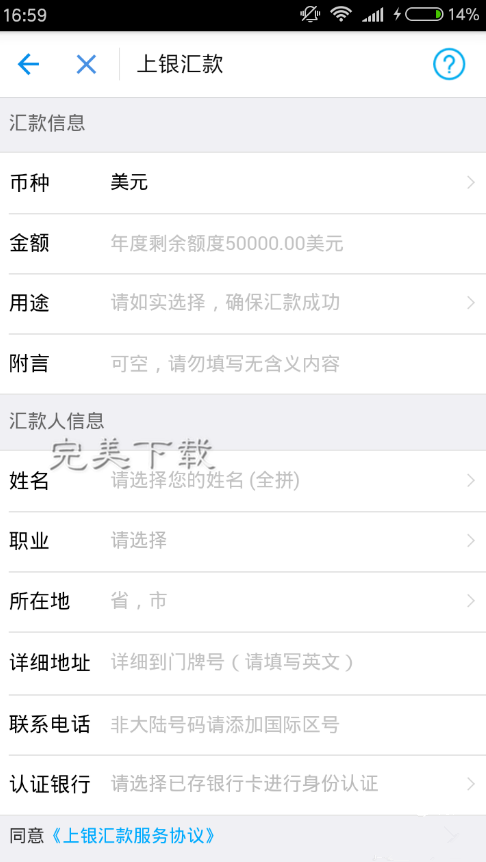 4、点击“我要汇款”之后,系统会自动进入表单的填写页面,这里需要注意的是填写一定要确保准确无误!否则造成转款失败,手续费用是不返回的!