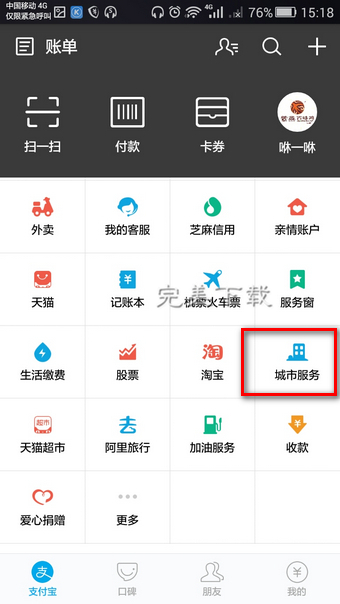 下载支付宝进入首页,然后往下拉找到“城市服务”