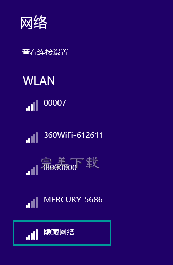 以本人windows 8.1系统为例,点击右下角的无线网络图标,可以看到无线连接列表里看不到我们设置好的无线网络,但是却有一个选项是隐藏网络,对,没错,就是点击这里,然后一步步输入无线密码的名称和密码,即可完成连接